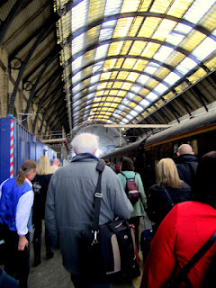Due to some last minute planning on the part of my travel companions (AKA the flatmates that hadn't already seen Avenue Q), I took the train alone early Saturday morning. The other two flew, as it was cheaper than last minute train tickets. Seemed like a bit of a let-down at first, but travelling alone is a highly underrated joy in life. Five hours later it's a bit past noon in King's Cross, London. One of the many things that really don't compare in Canada are our train stations - King's Cross was energetic and bright and efficient and really a neat place to be.